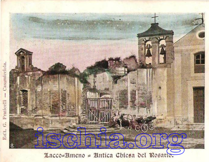 La Chiesa del Rosario distrutta dal terremoto del 1883 sorgeva di fianco alla Chiesa dell'Assunta.